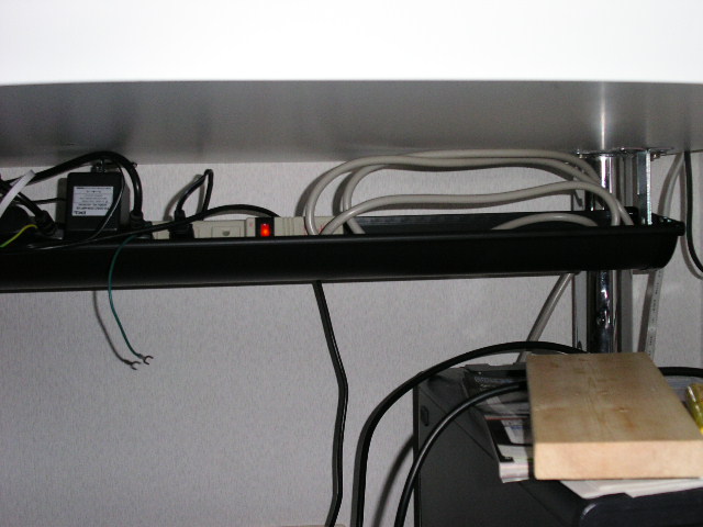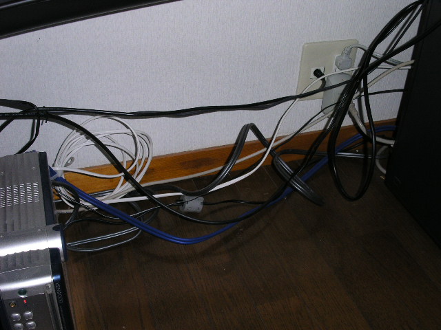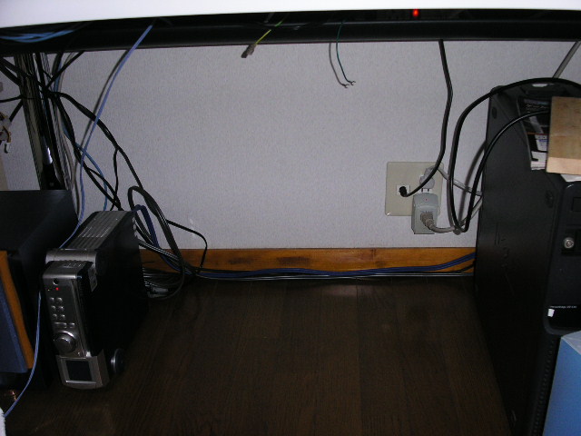机の下を這っているコードをやっつけました。