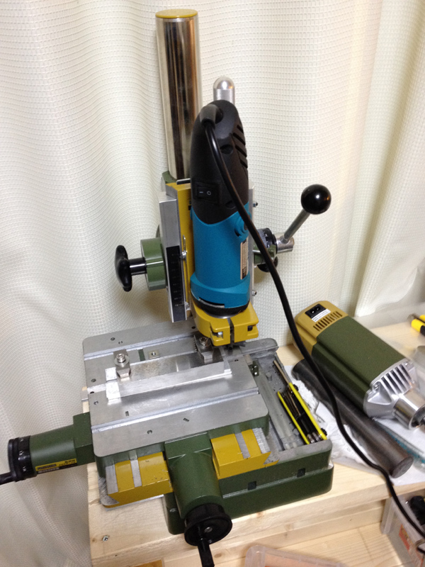 先週中ごろから作業台×3とプロクソンフライスにナゾの台湾製ルーターをつけるためにスペーサー作ってました。