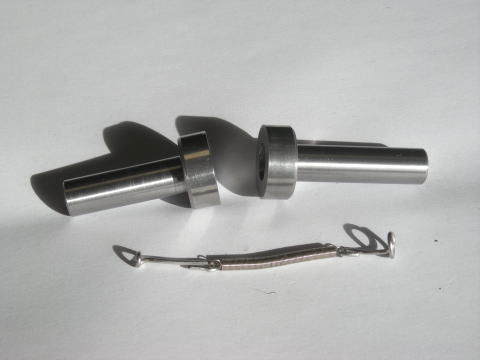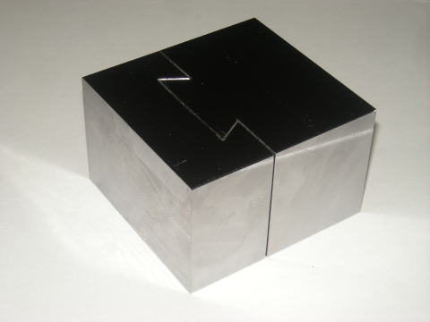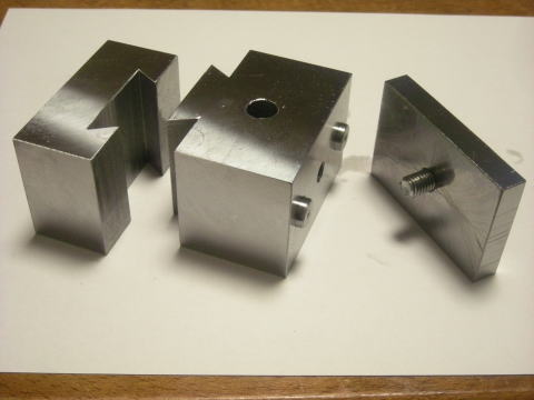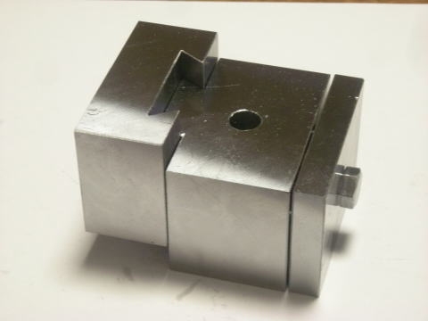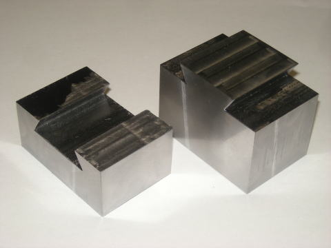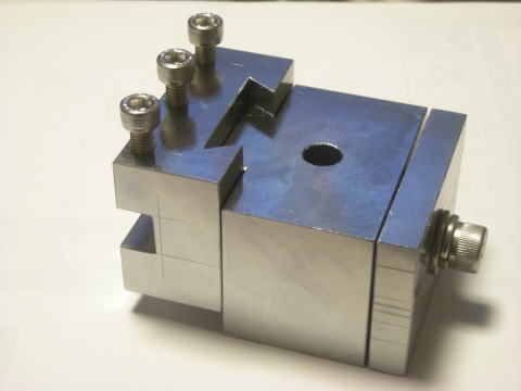 ロッドが刃物ブロック(左のブロック)を押すとアリ溝のテーパー面同士がタッチしてその摩擦で固定される構造です。